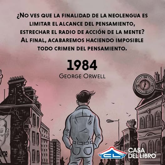 El doblepensar es la facultat de mantindre dos opinions contradictories al mateix temps, sense deixar el sentiment de falsetat i culpabilitat. “Decir mentiras a la vez que se cree sinceramente en ellas, olvidar todo hecho que no convenga recordar, y luego, cuando vuelva a ser necesario, sacarlo del olvido sólo por el tiempo que convenga, negar la existencia de la realidad objetiva sin dejar ni por un momento de saber que existe esa realidad que se niega... todo esto es indispensable. Incluso para usar la palabra doblepensar es preciso emplear el doblepensar. Porque para usar la palabra se admite que se están haciendo trampas con la realidad. Mediante un nuevo acto de doblepensar se borra este conocimiento; y así indefinidamente, manteniéndose la mentira siempre unos pasos delante de la verdad. En definitiva, gracias al doblepensar ha sido capaz el Partido —y seguirá siéndolo durante miles de años— de parar el curso de la Historia.”.