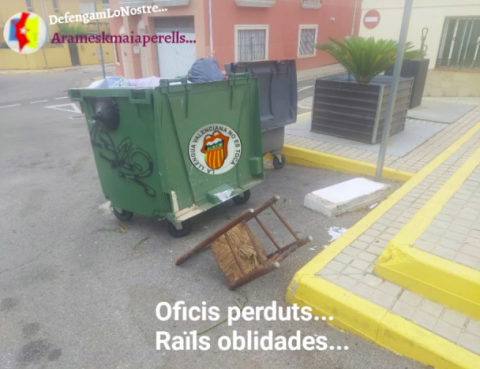 Trist, de vore com totes estes activitats, els politics, les han prohibides, unes directament i unes atres en tants requisits que les fan prohibitives, provocant aixina que les terres i els boscs s’abandonen. Els governants, preferixen importar de països en desenrroll a on les condicions laborals son precaries i sense control fitosanitaris coherents. Els boscs no se cuiden, ni netegen, preferixen que es cremen en grans incendis. Els oficis no se recolzen i es perden, aixina en conte de reparar, provocar que la gent tire al fem un fum de contaminants, obligats a comprar mes productes, creant mes contaminacio. Matar llengües, com la valenciana ho fan sense escrupuls, en tal de mantindre's en el poder i d’omplir-se les boljaques...