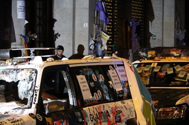 He vist negar per part del moviment independentiste i simpatisants que hagen hagut "incidents" en el procedir dels manifestants catalans A pesar de la destruccio de tres vehiculs del Grup de Reserva i Seguritat (GRS) de la Guardia Civil i furtament del contengut, armes i municio incloses, afirmen que s'ha observat una actitut civica i intachable en tot moment.