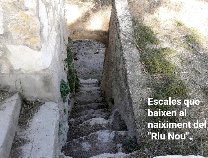 Aci en un protocol no escrit baixavem per les escales de pedra a veure aigua. Si anavem en temps i el terreny no estava banyat passavem a tirar-nos pels barrancs, el de la "risa"perque nos feya cosconelles en pancha al tirar-nos, el de la" mort" per lo empinat que estava i a on era facil que et feres mal.
