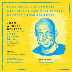 Pero estos amants de la justicia i de l’orde se n’han eixit per la tangent. Sis dels mossos reconegueren haver causat la mort de Benítez. Un pacte d’ultima hora en la fiscalia facilità que els condenaren nomes a dos anys per –atencio– homicidi imprudent i tortures. Ademes, els suspengueren de jornal i treball durant dos anys. Pero clar, la justicia es cega: el juge suspengue l’eixecucio de la sentencia i no entraren en preso (El País, 9-5-16).