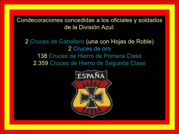 En l'entradeta d'AVANT afirmen que "les fotografies que aporten [referint-se a les que penjarem en l'articul enllaçat] no sabem a que responen", puix es molt senzill, nomes cal saber llegir, la font diu que es una manifestacio de Falange i l'emblema de División Azul –franquistes que lluitaren en l'eixercit N-A-Z-I–, si el d'Adolf Hitler. ¿Els pareix poc? ¿Si? Puix no continuen llegint-nos. ¿No es denunciable? ¿Algu que es considere democrata o valencianiste no hauria de condenar la participacio d'estes organisacions? ¡¿Requerix argumentar-ho mes?! ¿Qué tenen de valencianistes estos?