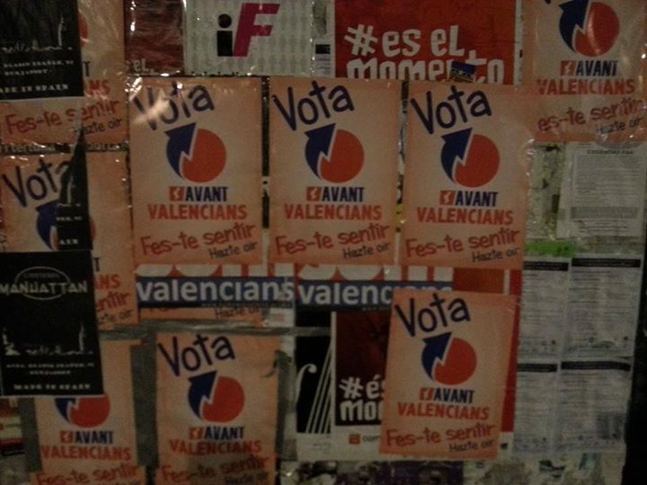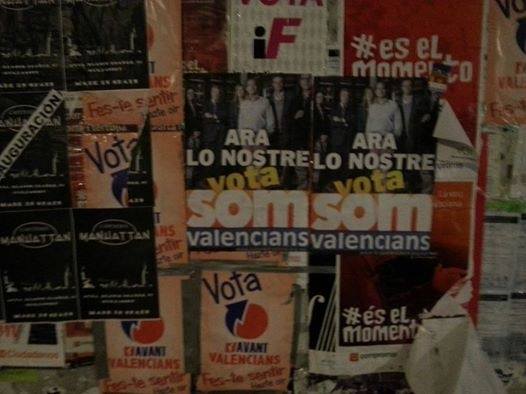 En les imagens s'aprecia que baix dels cartells de Som Ego hi ha cartells de la Coalicio AVANT Valencians.