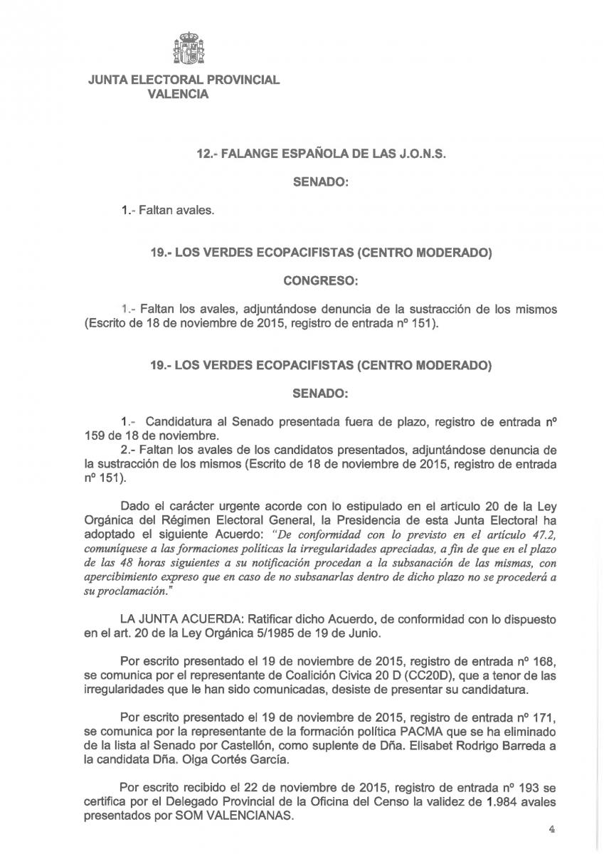 ¿Vos recordeu de les 4000 firmes que supostament presentaren com avals per a participar en les eleccions? Puix pareix ser, segons consta en els documents publics de la Junta Electoral, no arribaven a les 3000 i li les tiraren arrere per irregularitats manifestes, "aço fa olor, clarament, a base de senyes" comentaren en la Junta. No obstant, des d'instancies superiors, feren bones, "inexplicablement" a pesar de les moltes irregularitats que mostraven, les firmes necessaries per a presentar-se per Valencia, unes 1984, atenent al recurs presentat per ells.