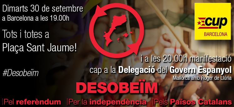 Pero no paren ahi. En els ultims dies i semanes, estem observant com una entitat denomina “desobeïm”, vinculada estretament al partit catala Candidatura d’Unitat Popular (CUP), partit que junt a CiU, ERC i Iniciativa per Catalunya-Esquerra Unida promouen el sainet del fantasmagoric referendum, està prenent protagonisme demanant en les rets socials i en els carrers la “desobediencia”, pero completant-la en una atra soflama: ‘Desobeïm, pel referèndum de la independència dels Països Catalans’, en companyia d’un mapa dels inexistents “països catalans”. Sí, aprofitant que el Turia passa per Valencia, o que l’Ebre ho fa per Tarragona, ¡¡nyas!!, claven l’entelequia dels països catalans. Els valencians ya estem patint estes agressions des de fa moltes decades, i estem denunciant-lo igualment des de fa molt de temps, sense que cap partit en el Govern de Madrit, cap, ni PSOE ni PP, hagen mogut un dit per a fer respectar l’identitat valenciana, balear i aragonesa, puix fer apologia dels països catalans es un atentat directe als nostres territoris i als nostres interessos, a banda de ser contrari a llegalitat vigent, arreplegada en l’articul 145.1 de la Constitucio espanyola, d’ahi de la gravetat per als valencians, entre unes atres raons, que se duguera a terme la proposta del PSOE d’autorisar el federalisme. En un video se pot comprovar el grau de manipulacio, a l’estil ‘goebbelià’, que utilisen els anexionistes i fonamentalistes del CUP i “Desobeïm” per a difondre i justificar les seues reivindicacions politiques. Est es l’enllaç: https://www.youtube.com/watch?v=2x2-DENwlSU