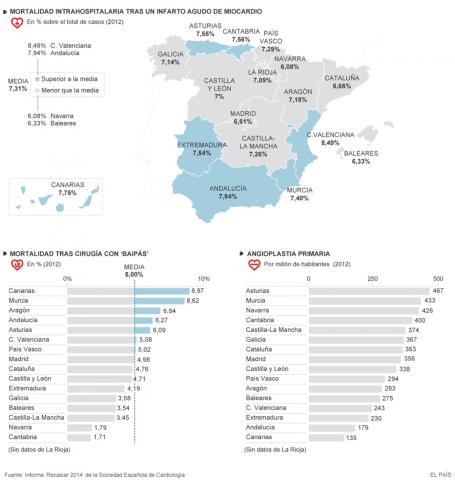 La mortalitat per infart mostra la desigualtat entre comunitats. La diferencia arriba al 40% entre la de menor tasa, Navarra, i Valencia, la de major.