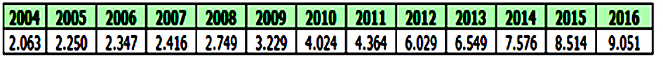 Aixina el passiu puja sense parar i significa impondre mes imposts que no agraden –teoricament– ni als neolliberals, en la practica els necessiten per a buidar i arruïnar les arques publiques, ya que viuen de les "mamandurrias" i els robos a mans plenes–. Segons fonts de la  Generalitat Valenciana, podem observar l'aument de l'endeutament per habitant –en milers d'euros–: