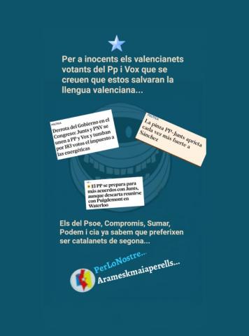 Resulta que ara el PP, eixe partit tan "valencià", en Madrit negocia i vota en companyia de Junts, el partit de Carles Puigdemont, per a tractar de tombar al govern de l’Estat.