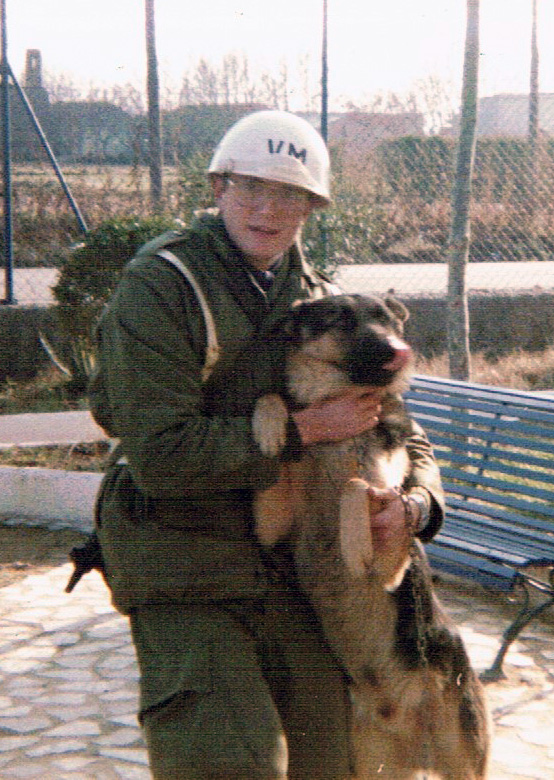 Membre de la Vigilancia Militar en companyia de Bruno, un dels gossos de la VM