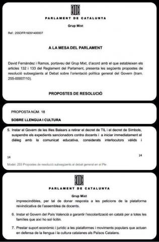 El Parlament catala exigix al Govern valencià que es garantixca l'ensenyança en catala en les escoles valencianes.