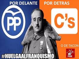 Per a mantindre el cartel que conformen les empreses, la banca, la politica i la justicia, es necessari que l'aparat ideologic i repressiu actue sense res que el puga parar. A l'estat de migestar o malestar, baix l'excusa del gran saqueig, li han eixit traces fascistes. La poblacio assumix el caciquisme, a força de la desinformacio dels mijos de comunicacio que els omplin la boca com a les oques per a rebentar-los el fege i fer foie gras –seran la majoria silenciosa de Mariano Rajoy–. Es tarea d'heroes opondre's ad estes practiques propagandistiques, denunciar-les i combatre-les perque son majoria. El problema no son els politics, es el sistema, no les formes sino el fondo, que permet i fomenta la conducta criminal, canviar de partit no es prou, ha de canviar el marc.