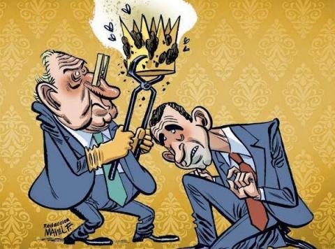Yo com no soc subdit de ningu no reconec ad este rei "elegit per la gracia de Deu", qualsevol democrata vol una republica perque es lliure de votar al seu cap d'Estat, no val l'argument de que fon votat el rei perque es inviolable i aço es un destrellat inadmissible. No es pot separar una cosa d'una atra, els vots li donaren una prerrogativa irracional, la nulitat es d'orige (falacia de peticio de principi). Ya està be de ser pagafantes, sufragar els caprichos i les amants, pagar a vividors, a corruptes, als dels top manta: els que fan el manta i chuplen dels imposts de tots. Ya podria haver fet el predecessor de Felip V, socarrador de ciutats valencianes, haver aportat els diners que s'han gastat en la seua entronisacio per a pagar les beques de menjador dels chiquets que passen fam en Espanya. ¡Que sí, que sí! Hi ha 2.800.000 de menuts, en el Regne d'Espanya (a on no se ficava el sol), en risc de pobrea i no ho diuen rojos terroristes antisistema d'ETA, sino Eurostat, Caritas, Save the children, etc. Penultims d'Europa, a soles nos guanya Rumania, pero "España va mejor", es de veres, millor que Rumania. Podia haver tengut un detall, pero ¿Per a qué? Alli estaven els borregos plorant i aclamant-los. La mateixa llogica seguix la corrupcio, l'equacio es complix al 100% i es la següent: si uns fan lo que volen + els seguixen votant = cada vegada mes corrupcio.