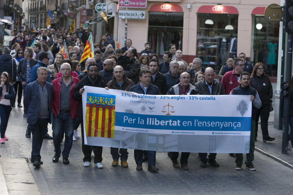 En la llinea popular de centrisme i lliberalisme –aixina s'autodefinixen– Som Valencians ixque en una marcha procastella el 25 de març de 2017, en una pancarta demanava un 33% per a cada llengua, en contra de tots els estudis sociollingüistics i sicologics del mon, clar que l'idea no era original ni brillant. Endevina endevinalla ¿a quín partit politic copiava? ¡Che, quína casualitat, convergien en el Partit Popular!, ¡no m'ho puc creure! ¿Cóm es mengen els que van de "nacionalistes" dins d'eixe partit la noticia, en creïlles o com fan les oques obrint ben be el receptacul? Puix en una miqueta de salsa d'autoodi com els davidians en Waco. Es que la pragmatica es molt roïna per al fege.