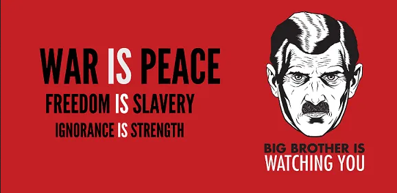 U dels principis del partit INGSOC, en la novela 1984 d’Orwell i que tan be practíca l’extremadreta es representa en el seu ministeri de la Veritat: l’gnorancia es la força, la guerra es la pau i la llibertad es la esclavitut. I d’aci a enviar a la policia patriotica a desfer als enemics de la nacio, nomes hi ha un pas.