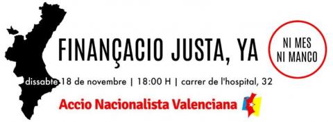 Accio Nacionalista Valenciana fa una crida al poble valencià per a que acodixca a la manifestacio per un "finançament just" el 18 de novembre de vesprada