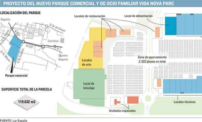 Darrere d'este proyecte està el Grup Lar, que invertirà un total de 53 millons d'euros, en el centre comercial el qual es dira Vida Nova Parc. Ad esta aportacio dineraria se n'afegiran uns atres 40 que invertiran les empreses que operaran dins del recinte, es dir, les tendes que aniran instalant-se com Leroy Merlín, la joguetera Panre o els Yelmo cines, entre uns atres.