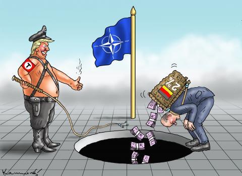 Mes de lo mateix, mes OTAN es el problema, no la es la solucio, per tant lo de sempre, la solucio sistematicament repetida ad nauseam, es convertix en un problema irresoluble perque equivoquen la tipificacio llogica de l’assunt: no es requerix un canvi 1 relatiu a la cantitat (mes aportacions), si no un canvi 2 que ha de ser cualitatiu (un atre organisme). A pesar de l’exigencia del creiximent del gast i la consegüent compra captiva d’armament, EEUU continuarà en la mateixa politica propia i unilateral, com ha fet sempre.