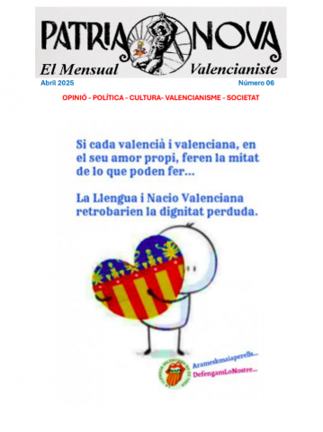 Aci podeu descarregar el numero 6 de la revista Patria Nova en PDF en els articuls publicats en Abril. La revista mes completa en llengua valenciana Normes d'El Puig que podreu trobar.