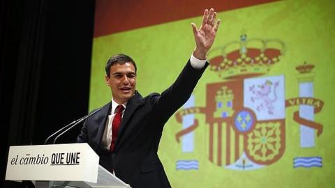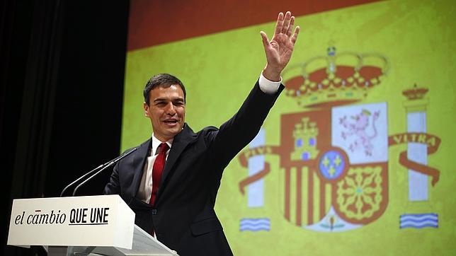 Estem en juny i es nota que s’acosten les eleccions generals (¡En novembre!). El dirigent de Ciudadanos, Albert Rivera, ha confirmat que es presentarà per a aplegar a La Moncloa; el secretari general de Podemos, Pablo Iglesias, ha començat un tour per Espanya; el PP, de moment, ha fet ‘grans canvis’ organisatius per a encarar els comicis (¿Algu sap quí son estos senyors i senyores?), i el partit de govern per excelencia, el PSOE, no es queda arrere. El lider, Pedro Sánchez, el dia de la proclamacio com a candidat –ningu mes ha concorregut– (21-6-15), es presentava en un escenari que tenía com a fondo una enorme bandera espanyola.