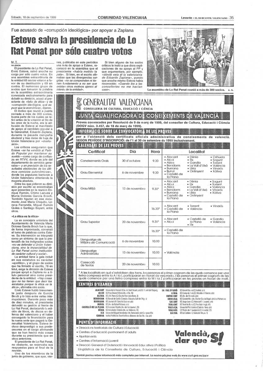 Veritat, justicia i reparacio son els principis per a resoldre conflictes; la critica com a element fonamental de construccio de moviments forts, convincents, coherents i despachar als traïdors son qüestions que haurien d'estar damunt de la taula. Cap ser racional aniria al front de batalla en una "colla" de firmadors de la valenciania de Zaplana. Els valencianets si. ¿Tenen alguna cosa que dir del cas "Erial" de Zaplana? Callaran com en missa. En les escoltes del "Cas Naseiro" el pardalet manifestava que havia de "enriquir-se", comprà per a ser alcalde de Benidorm a la regidora socialista Maruja Sánchez i al seu marit, els arreglà la vida als dos; lo pijor de l'assunt es que molts delits han prescrit perque mentres estava en el poder era intocable. Tots els valencianets s'oblidaren selectivament dels problemes i de les conductes de dubtosa moralitat, i nos el presentaren com el salvador. Tots els firmants miraren pel seus interessos personals o pel seu ego; es dir, pensaren en enriquir-se o en omplir-se la boljaca. L'inocencia a una determinada edat es delictiva o increible.
