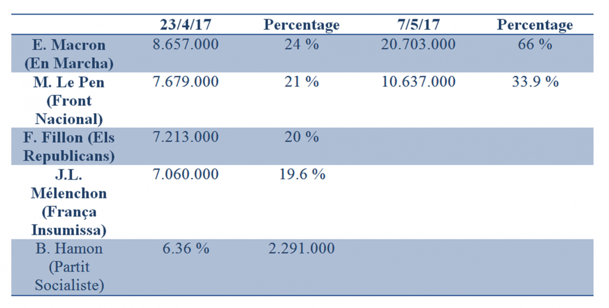 I no oblidem una important qüestio. Macron renegà del seu passat socialiste… si es que alguna volta ho fon. A pesar de tot, sera un president ‘per defecte’, no ‘per eleccio’.